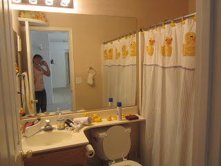 This is the guest bathroom. I got a special corner shelf for the rest of my duck collection! They’re finally all together!