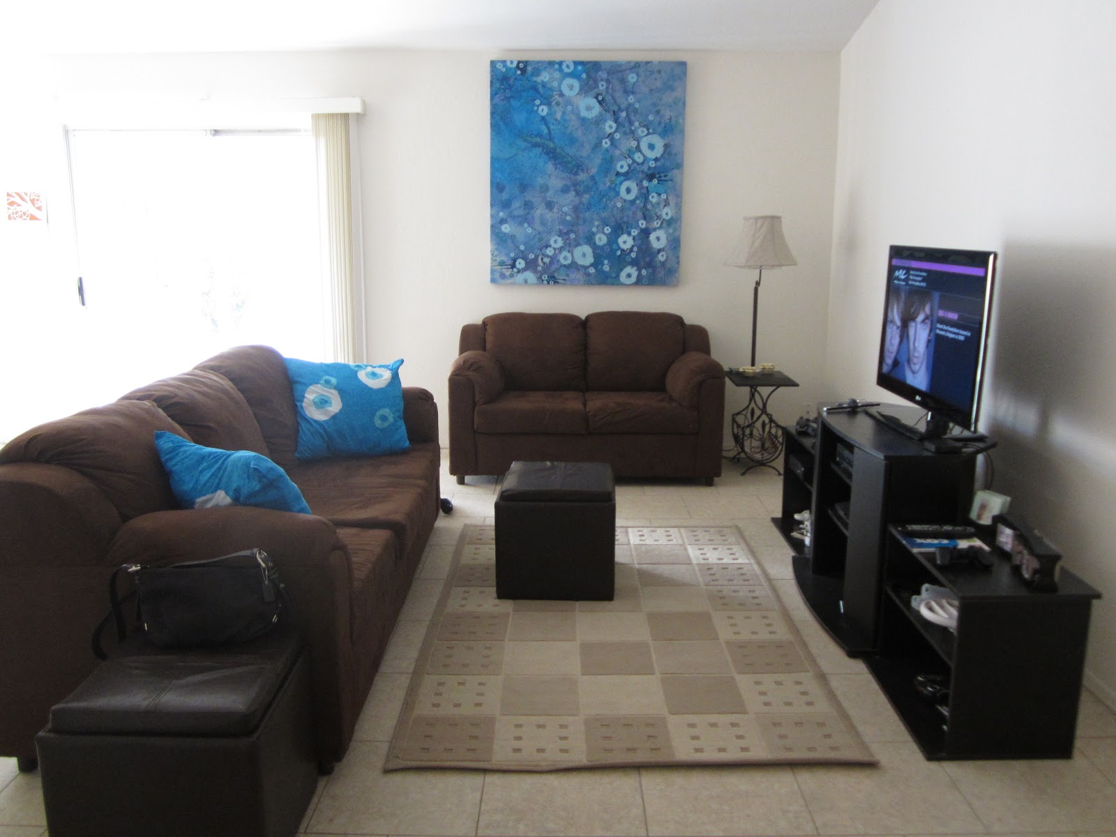 Here is the living room by itself. I made those pillows to match the painting, courtesy of Heather Clements.