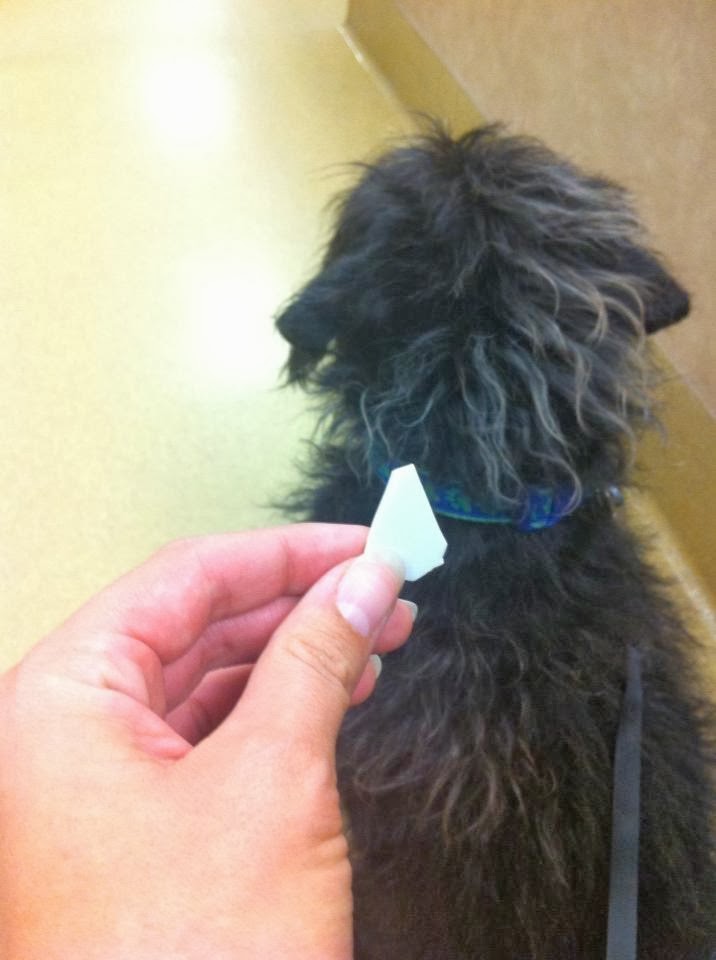 More than a day and a half after he’d eaten what we thought was just candy, Max coughed up a chunk of the porcelain bowl about a half-inch long. I stared at the pool of vomit and broken bowl in the middle of my living room, shocked. I looked at my dog. He stared back, relieved. It was 6 a.m. I loaded him into the car with some blankets and drove to the emergency vet.We waited for about a half hour next to a Golden Retriever who had transmission fluid for breakfast, and went in for X-rays. Luckily, the piece he coughed up was the largest piece of bowl in his bowel. The vet said the rest would pass, and we were told to keep a close eye on Max and everything that came out of him for the next several days. Seeing as how most of what came out of him required me to mop the floor, we had no choice but to bear witness to every aspect of my poor dog’s dysfunctional digestive system until it returned to normal. Thankfully, Max is all better now and my kitchen floors are sparkling from more mopping than I think I’ve done since we moved in.
