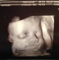 While we were looking around in there, our baby boy showed a little of his personality, knocking right back at the ultrasound tech with his tiny balled up fists, and even smiling a little, which we tried to catch in this 3-d image. Seeing his face for the first time only makes me want to meet him sooner, but we’ll let him cook a little while longer.