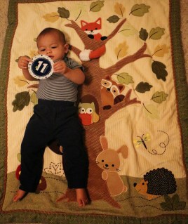 At ELEVEN months, baby B likes… his scooter, cruising, taking the occasional step when no one but mommy is looking, reading books, pretending, building things, stacking, sorting, helping with laundry, dancing, and so much more.