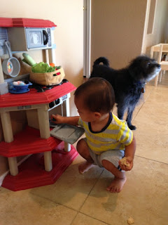 I’m here to tell you what many same parents already know: that last part is false. 17 months old, is too young to participate in the kitchen.