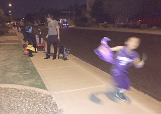 The next weekend was Halloween. With a dress rehearsal under his utility belt, B was set to go with his cousins, our dog, and a wagon in tow as we traveled the block going door-to-door. It was like three adults trying to herd cats… and a dog. B had a great time sprinting from one house to another, occasionally spilling his entire bucket of candy all over strangers’ yards, one cousin running ahead while Elsa climbed into the wagon, and Super Max staking claim over all of the bushes and fire hydrants in the neighborhood. At one point, I turned around to see B holding a lollipop wrapper with the biggest smile on his face. By the end of the night he was deliriously tired, sticky, and full of sugar. The traveling circus returned home with a pretty good haul.