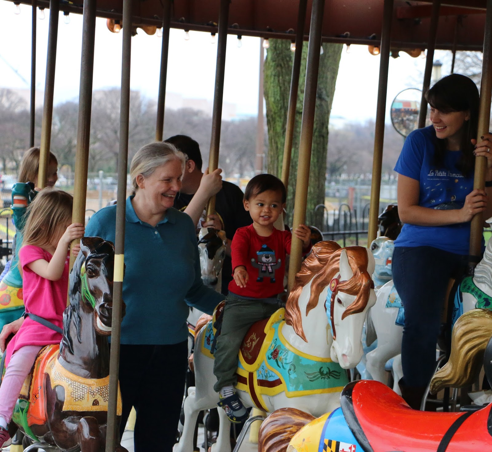 During our trip we even had the opportunity to go into DC for a day to check out a new section of the Museum of American History. We rode the Metro (or, “train!”) and B was over the moon. Though he loved the train ride and the museum, the highlight for me was taking him and the cousins with my brother to ride the carousel on the National Mall that we used to ride when we were little. B has always been a big fan of watching, never riding the carousel, but that day he changed his mind. He got on the horse by himself and smiled ear to ear the whole time. My big boy.