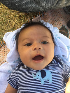 At 8 weeks, baby is growing so quickly! He likes: being outside, his brother, smiling at mommy, listening to songs, playing with daddy, the octopus toy on his play mat, his cousins, and so much more!