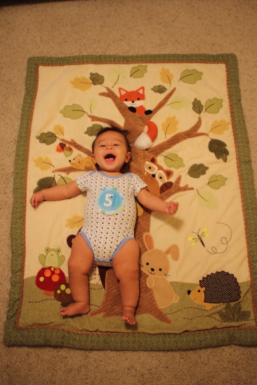 At 5 months, Baby Bro likes: smiling, giggling, taking toys from his big brother, floating in the pool, playing in his exersaucer, practicing sitting up, putting everything in his mouth, snuggling his blankie, being in mommy or daddy’s arms, and so much more.