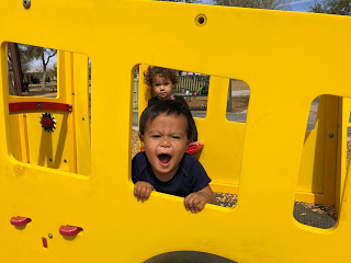 In addition to their risk of escape, velociraptors and toddlers can move very quickly in short bursts. For example, if Baby Bro gets hold of a piece of trash at the park and senses my intention to take it from him, he’s already 20 feet away and shoving it in his mouth while laughing as if to say “catch me mom!” I look at him and think, “where was this coordination when I was trying to change your diaper this morning?”
