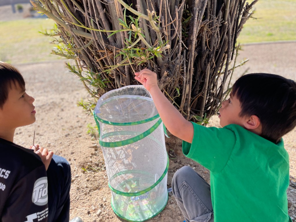 Every spring break for the last three years, to my husband’s terror, I’ve brought six-legged crawly insects indoors for the boys to observe and experience. It started in 2020 with a butterfly kit from one of my favorite brands featured in this post, where you can buy kits to raise insects from egg to to winged and ready to fly. The butterflies were a wonderful experience as we watched them emerge from cocoons and dry their wings. The boys named each one, drew pictures of them and happily released them in our backyard.