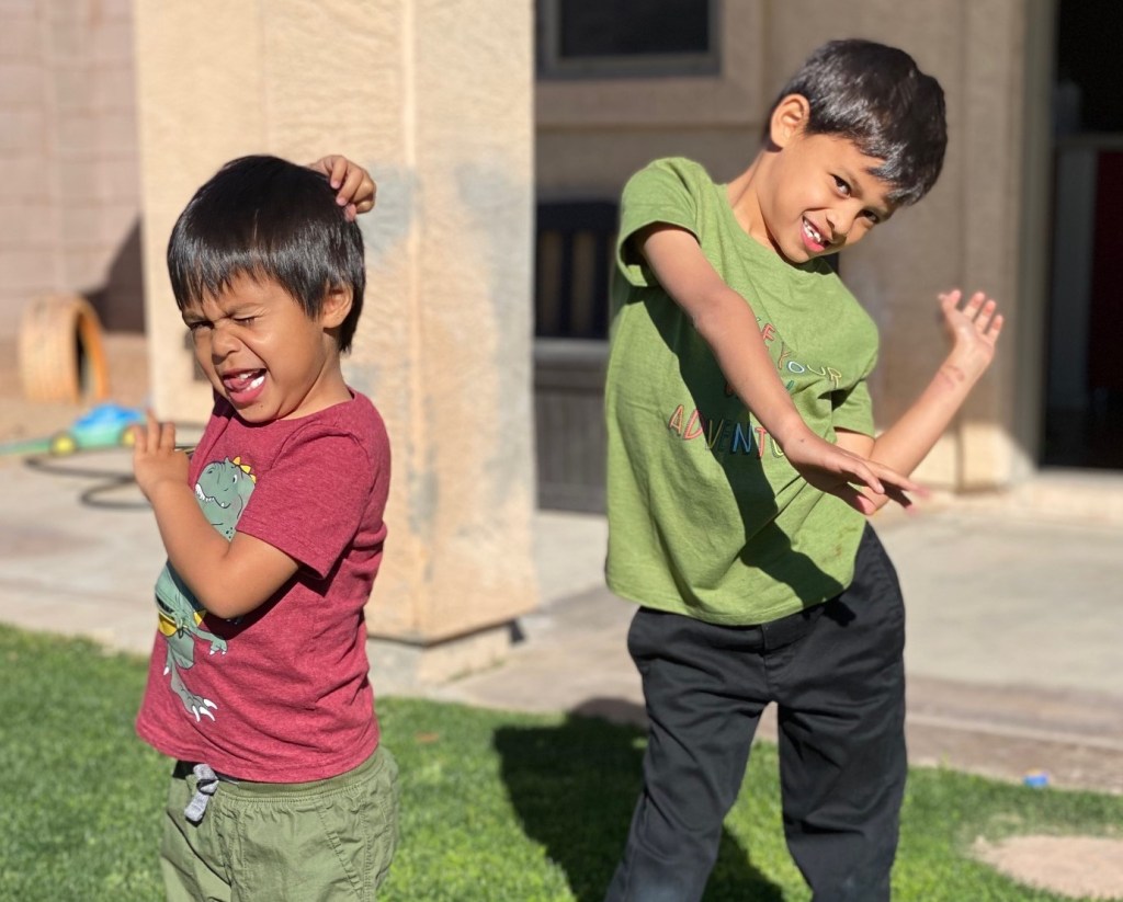 The kids were focused, squinting in the sun as they poured water from the hose into the sandbox that had been transformed into a general mud pit in our backyard. They jabbed toy dinosaurs into the sand and grabbed super hero action figures, yelling dialogue and narration to one another during their daring rescue. I squinted too, trying to find the slightest bit of toddler left in their faces. It’s all gone in big bro’s, and barely a glimmer left in his little brother’s. They’re muddy, rough and full of noise and sass. They’re all boy, no longer baby.